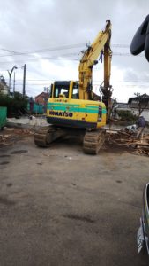 解体現場では重機「主に油圧ショベル」と言われる建設機械によりアタッチメント交換を行い工程が進んでいく。。。。。
