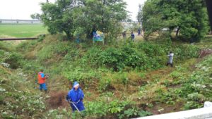 6月も中旬を迎えた梅雨空の元、三谷地区内の除草作業が雨天決行で行なわれた。。。